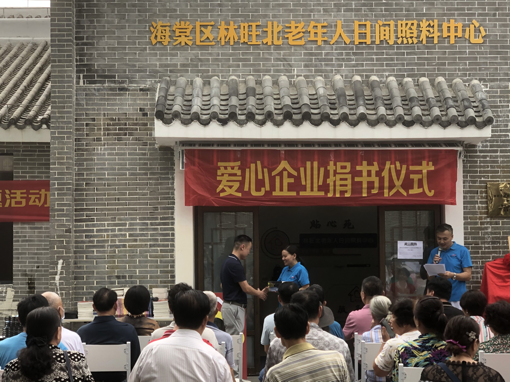 三亞綠盾環(huán)保科技有限公司關愛老人,熱心公益,為為海棠區(qū)林旺北老年人日間照料中心捐贈書籍。